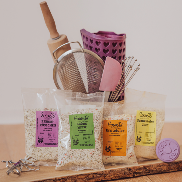 Wenn du Hundekekse selber backen willst, ohne dich durch endlose Rezepte zu quälen, sind Bowell’s Backmischungen dein Shortcut: DIY-Feeling, volle Kontrolle über die Zutaten und ein Ergebnis, das dein Hund wirklich feiert. Back dir eure Lieblingssorten – und sorg dafür, dass kein Krümel liegen bleibt.