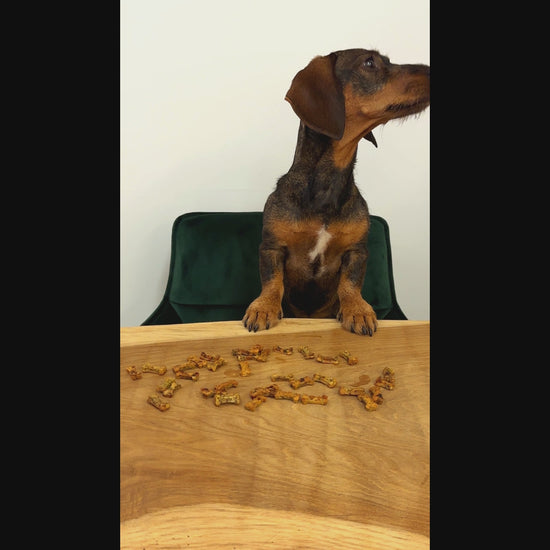 Kräuterfrisch, mild und in Minuten ofenfertig. Hundekekse in Lebensmittelqualität – ohne Zucker, ohne künstliche Zusätze.
