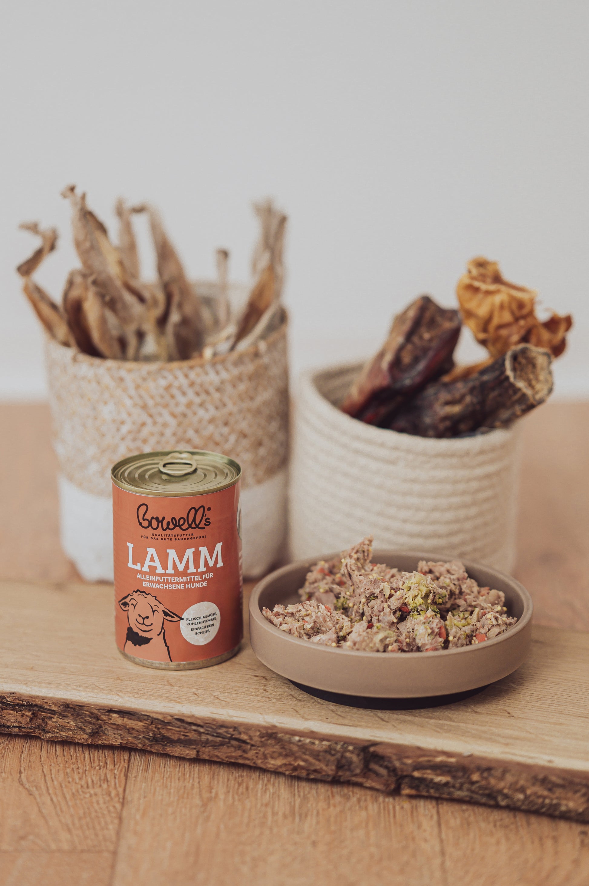 Bowell’s Komplettmenü Lamm – Nassfutter für Hunde in Lebensmittelqualität